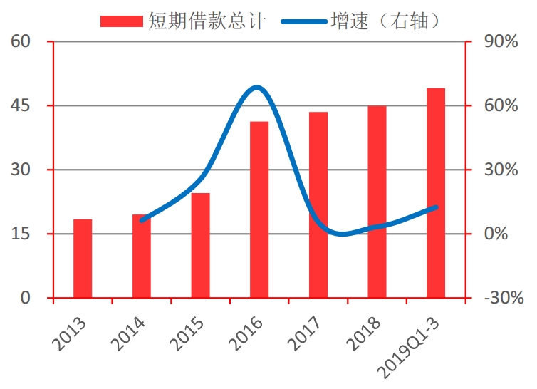 图26:短期借款总计及增速情况(亿元)