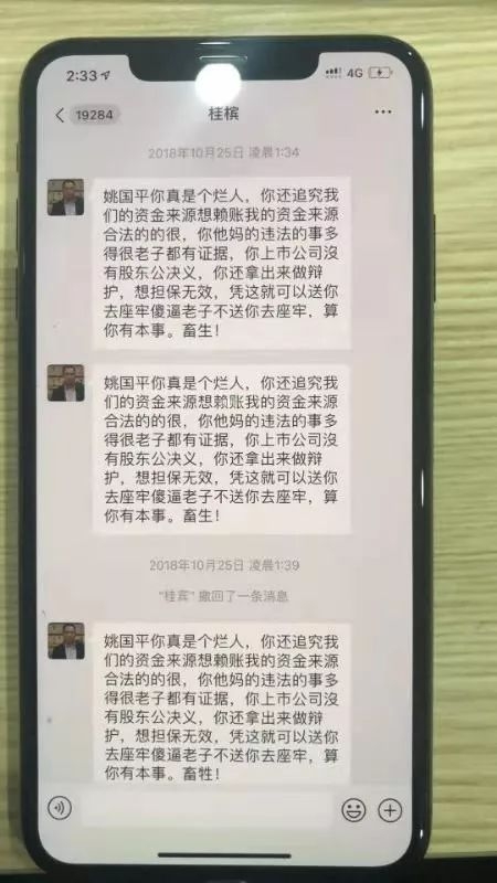 银河生物方面表示,已经通过多种途径发现,一个微信名注为桂槟的人,多次向姚国平催要借款,并带有明显威胁意图,而且李鸿、李昱涉及多个民间借贷纠纷。