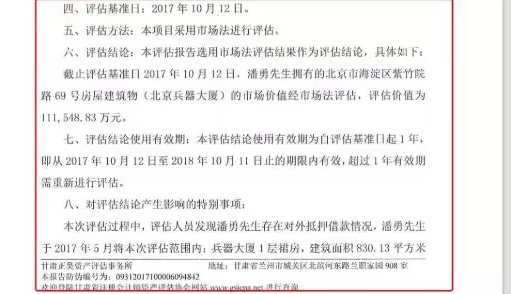 据了解,2017年银河集团以北京兵器大厦为抵押。据21新健康获得的一份评估报告显示,截至评估日期2017年10月12日,北京兵器大厦的市场评估价值为111,548.83万元。