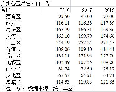 这么大的地铁客运量是哪里来的?数据显示,广州总面积7434平方公里,下辖11个区,各区常住人口不一,但均有超过60万以上人口,其中8个区的常住人口超过百万。要打通如此多的人口的运输通道,需要轨道交通助力。