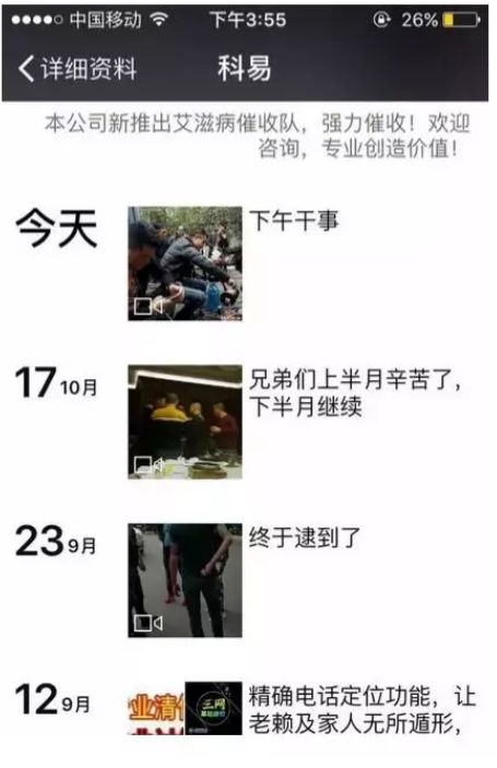第四步,让你在朋友同事面前彻底抬不起头来。他们会PS你的裸照,或者“灵堂照片”发给借款人的老板、同事、朋友;或者天天堵在借款人的公司门口,追着你讨债,这样一来,有哪家公司还敢收留这个借款人呢?有哪个朋友还能愿意和借款人来往呢?