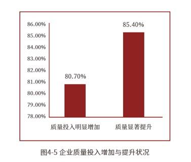 报告显示,企业质量投入持续增长,近三年内质量投入明显增长的达80.7%,质量水平有明显提升的企业占比85.4%。