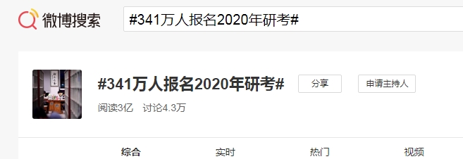 根据教育部官网消息,2020年全国硕士研究生招生考试将于12月21日至23日举行,报考人数341万人,再创历史新高。