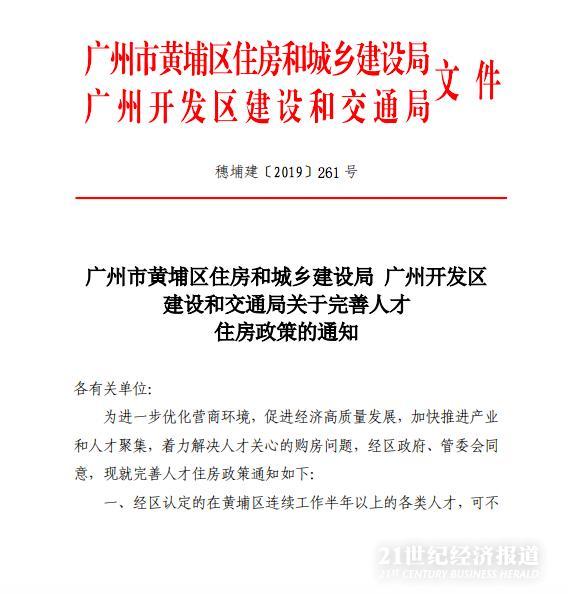 12月20日11点35分,广州市黄埔区、广州开发区(下统一称“广州黄埔区”)官方网站发布了《广州市黄埔区住房和城乡建设局 广州开发区建设和交通局关于完善人才住房政策的通知》(下称《通知》),对在该区的购房资格做了新规定。