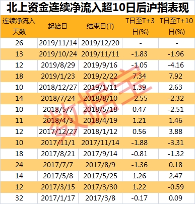 连续26日净买入意味着什么?结合历史表现来看2017年以来,共有15次连续净流入超10天。市场表现方面,连续净流入结束后3日、后5日上涨概率均超过50%。