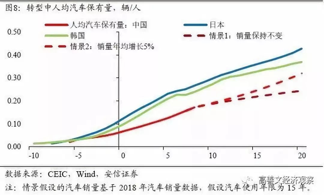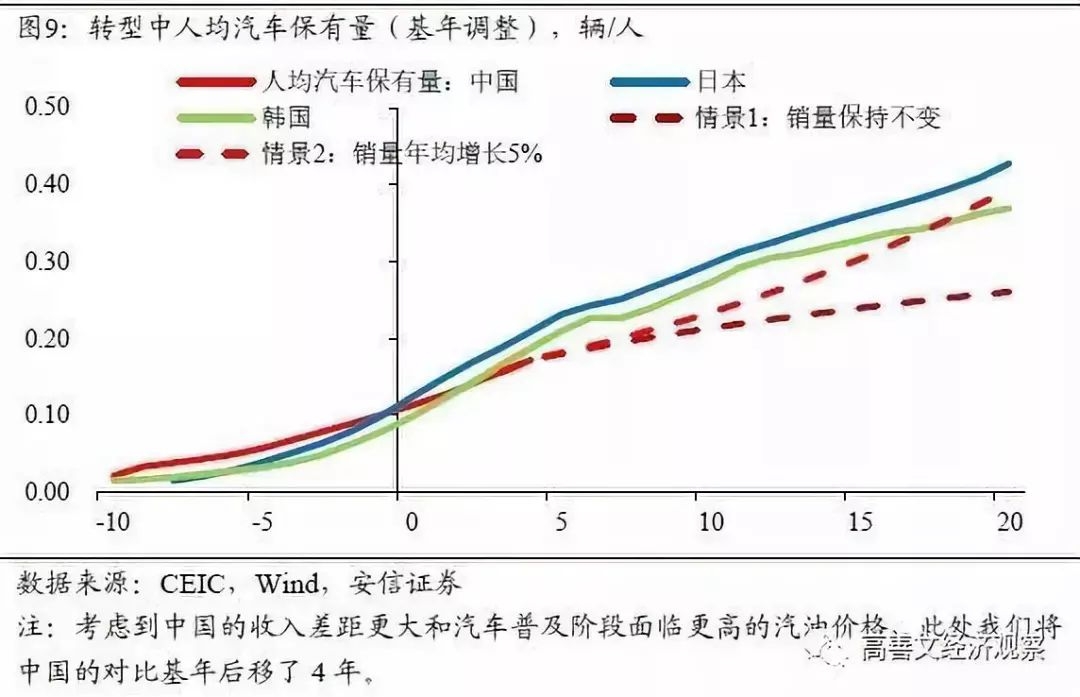 即便是做了这样的调整,一个绕不开的问题仍然是中国人均汽车保有量的提升速度相对更慢。