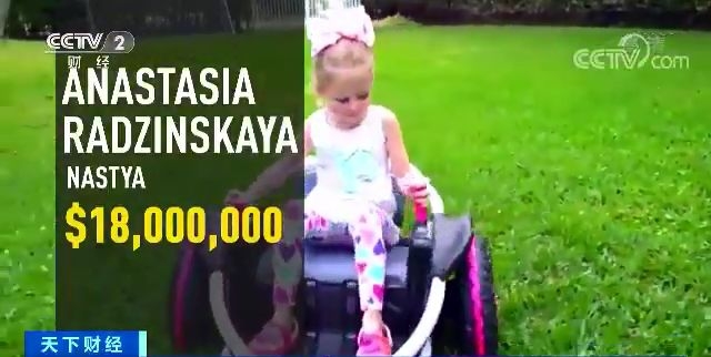 视频截图排名第三的是来自俄罗斯的5岁女孩阿纳斯塔西娅,年收入1800万美元,约合人民币1.3亿元。她刚出生时患有脑瘫,父母将她的康复过程拍成视频上传,创立了一个优兔频道。目前,她的视频内容主要是与父亲玩耍的各种场景。现在,阿纳斯塔西娅已拥有7个频道,订阅者超过1亿,视频播放量总计超过420亿次。