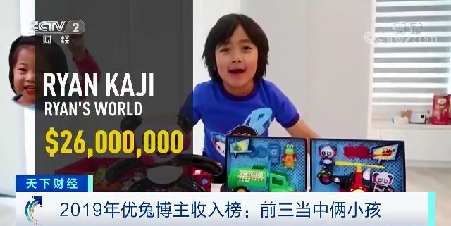 在福布斯发布的2019年YouTube收入排行榜中,Ryan以2600万美元(约人民币1.8亿元)排名第一,蝉联榜首。他在2018年的收入有2200万美元。