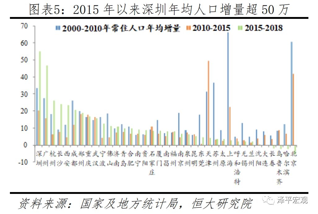 改革开放释放广州新活力,GDP由1978年的全国第八上升到2015年的全国第三,之后被深圳超越,2015年以来人口年均增量超40万、仅次于深圳。广州一直是华南地区的政治、经济、文化中心,是世界唯一2000多年长盛不衰的大港,3世纪30年代起成为海上丝路的主港,唐宋成为中国第一大港,明清两代是唯一的对外贸易大港。在众多的沿海城市中,广州最靠近东南亚、中东和欧洲。改革开放初期,广州GDP全国第八,不仅低于北京、上海,也低于武汉和沈阳等城市。得益于改革开放,广州先试先行、积极实践。1989年GDP跃居全国第三,仅低于北京和上海,此后到2015年的27年间,广州GDP稳居全国第三,奠定了其作为一线城市的基础。2018年广州GDP达到2.3万亿元,全国第四;人均GDP突破15.5万元,在十大城市中仅低于深圳;城乡居民人均储蓄存款全国第三,城镇居民可支配收入全国第五。广州的落户门槛远低于北京和上海,2015年以来每年新增常住人口分别为42万、54万、45万、41万。广州“2035规划草案”提出到2020年,常住人口控制在1800万人以内,未来有310万人的增长空间,是一线城市中政策空间最大的城市。教育方面,广州有广东省80%的高校,2018年在校大学生总数达109万人,数量居全国第一。