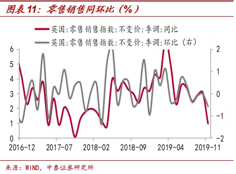 往前看,英国12月制造业PMI指数下滑至47.4%,续创2012年10月以来新低,11月零售销售同比下滑至1%,这是自1996年以来第一次连续四个月没有增长,在全球经贸一致减速趋势难改,WTO已经部分停摆以及全球贸易不确定性不断升级的背景下,脱欧后英国经济或进一步走弱。