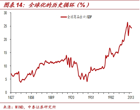 另一方面,全球化告一段落,很难再推进。全球经历了经济增长-贫富差距扩大-缩小贫富差距-经济再增长-贫富差距再扩大的循环。当前全球贫富差距再度达到了阶段性的高点,各主要经济体内部问题加剧,很容易产生内部问题外部化的现象,英国脱欧、各类贸易问题、WTO部分停摆等都是证明。而这些也意味着,高速增长的全球化进程或告一段落,全球经济和贸易或将维持偏弱的状态。
