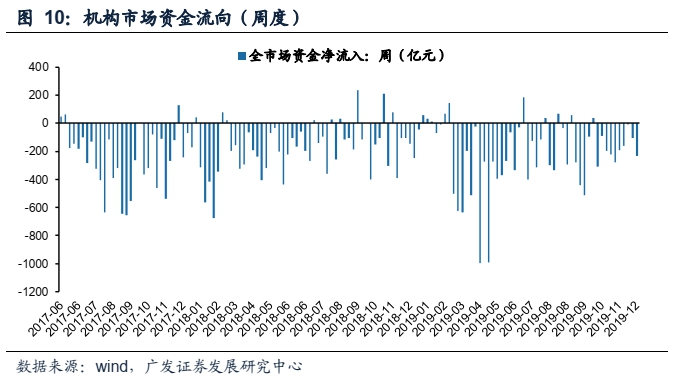 说明:二级市场的银证转账数据从17年6月16日以后不再更新,故此后A股资金流动合计数据不包含此项目;本报告数据更新截止上周日(2019年12月22日)。