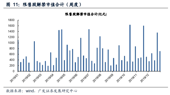 (1)限售股解禁:上周限售股解禁375亿元,前一周限售股解禁628亿元。预计本周限售股解禁1353亿元。