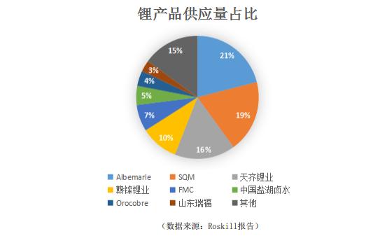 根据Roskill的统计,2017年全球的锂化工产品生产商的市场份额如下: