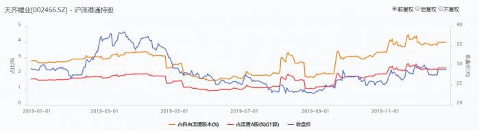 虽然2019年新能源汽车补贴退坡影响重大,天齐锂业自身又受到债务压力的限制,股价表现一般,但是北向资金表现却相对积极。