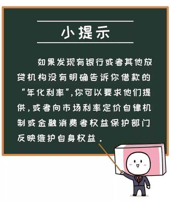近期,中国人民银行指导市场利率定价自律机制,推进“明示年化利率”的工作,要求各商业银行、互联网金融平台等必须在相关贷款产品中明确展示年化利率,帮助消费者了解真实借款成本。