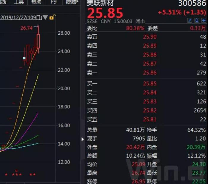 按照交易所发布的相关高送转定义,美联新材本次每10股送转9股并不算严格意义上的高送转,有“擦边球”之嫌,但由于“头啖汤效应”,公司股价随后走出5连板。