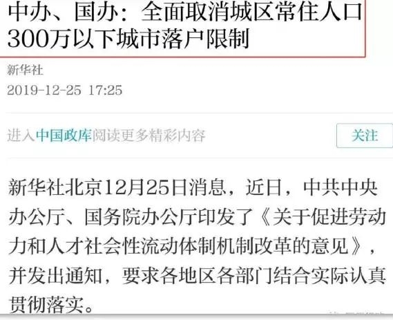 2019年12月25日,国务院宣布“全面取消300万以下城市落户限制”,再加上,今年来多个城市的地方政府开始“因城施策”,松绑楼市。