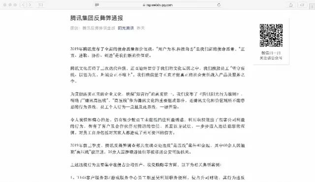 这是腾讯集团反舞弊调查部首次对外发布内部违规案件