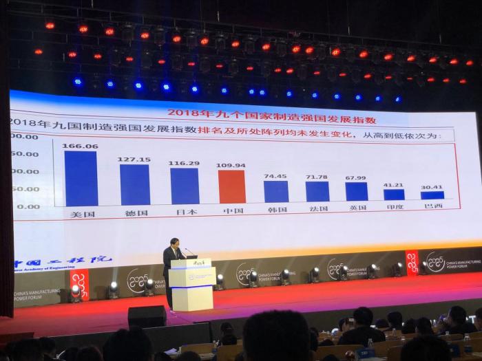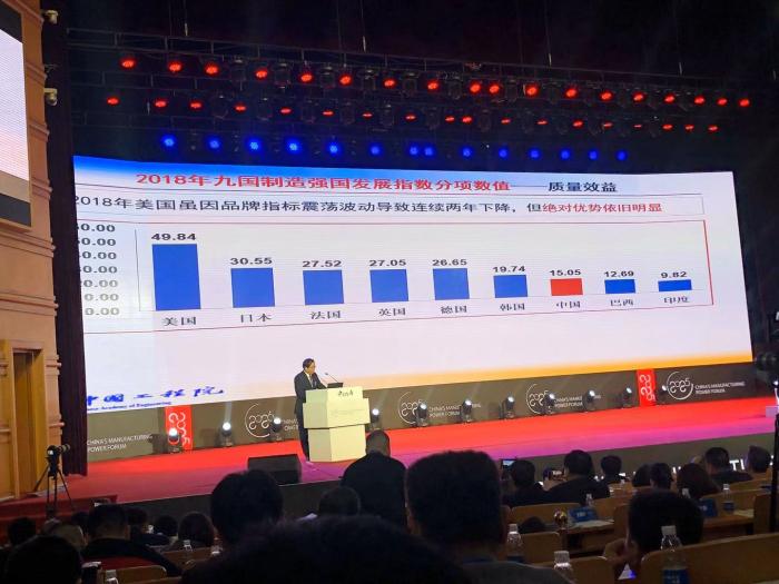 论坛上,机械科学研究总院集团有限公司副总经理、中国工程院院士单忠德发布并解读《2019中国制造强国发展指数报告》时指出,2012—2018年中国制造强国指数的稳定上升主要依靠规模的大幅提升,而质量效益、结构优化、持续发展三项数值合计仅提升5.4个点,三项分项数值合计的话,中国在九国中只能位列第7位。