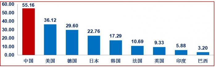 从历史进程上看,2012-2018年,美、德、中、法、韩、英总体呈现增长态势,增幅最明显的是中国(17.63),而日本、印度、巴西呈现一定幅度下降。