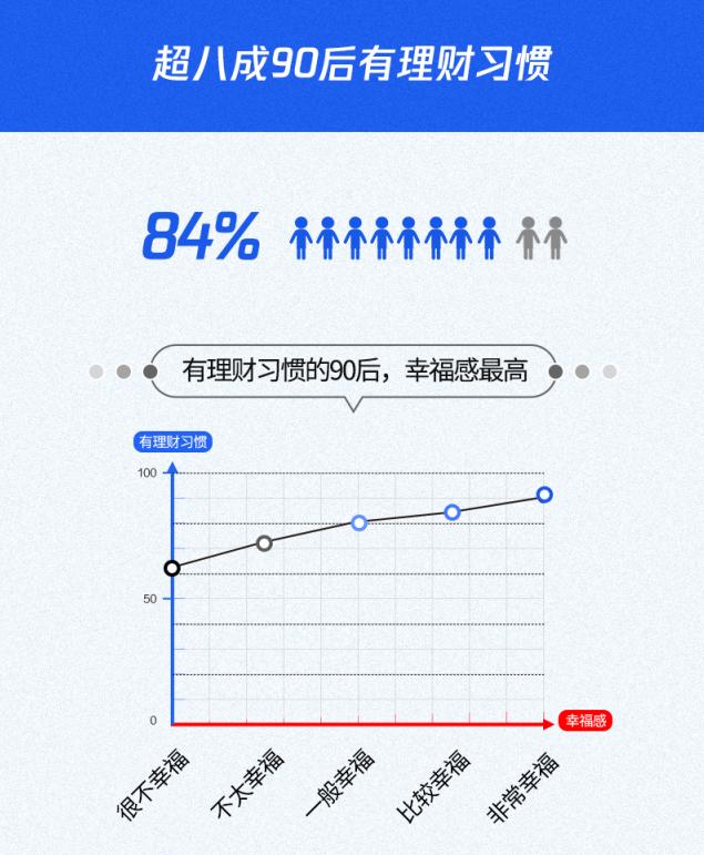 腾讯理财通的报告再次颠覆了大家对90后喜欢超前消费、几乎都是月光族的认知。数据显示,84%的90后有理财的习惯,而且理财倾向越高的90后,自我感觉更为幸福。