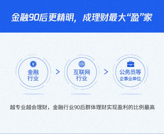 同时,90后理财不是说着玩的,报告显示,超过九成90后今年在投资理财中取得正收益,其中,金融行业90后盈利比例最高,其次是互联网行业和公务员行列的90后,建筑行业90后今年盈利比例最低,看来是“忙着搬砖”没有时间理财。