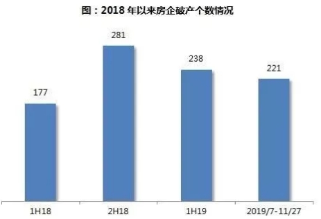 最明显的就是2019年房企破产呈速度加快的态势。据人民法院公告网显示,截至2019年11月27日,房地产企业的破产数量已经达459家,已经超过2018年全年的458家破产数量。