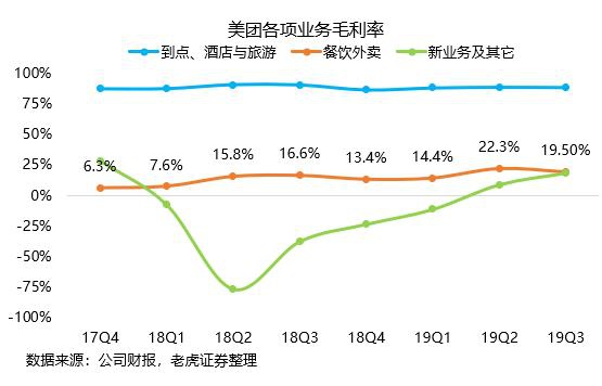 虽然,夏季的骑手成本有所抬升,本季度外卖业务毛利率从上一季度的22.3%跌至19.5%,但是相比去年同期16%的毛利润依然高出不少。更重要的是,美团通过提高外卖物流运营效率,将毛利率天花板从此前的15%左右提升至现在的20%水平线。