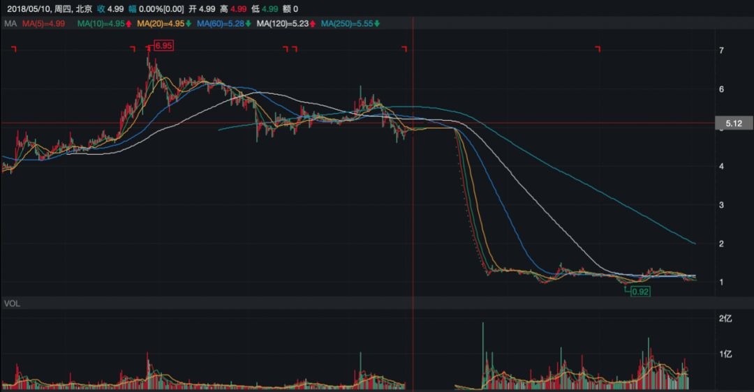 2018年5月,因公司相关行为涉嫌信息披露违规,*ST凯迪收到证监会《调查通知书》;次年4月底,证监会行政处罚事先告知书落地,因未按规定披露2017年财报及2018年一季报,凯迪生态遭证监会罚款40万元。同时,再度因相关行为涉嫌信息披露违法违规,凯迪生态又被证监会立案调查。2019年5月,*ST凯迪发布股票暂停上市的公告,称由于公司2017年、2018年连续两个会计年度的财务会计报告被出具无法表示意见的审计报告,根据深交所相关规定以及深交所上市委员会的审核意见,深交所决定公司股票自2019年5月13日起暂停上市。截至2019年5月10日,*ST凯迪暂停上市前的股价为1.05元。而一年前,也就是2018年5月10日,*ST凯迪的股价为4.99元。短短一年时间,股价暴跌了79%。