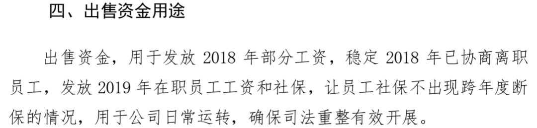 对于出售资金用途,*ST凯迪表示,出售资金,用于发放2018年部分工资,稳定2018年已协商离职员工,发放2019年在职员工工资和社保,让员工社保不出现跨年度断保的情况,用于公司日常运转,确保司法重整有效开展。