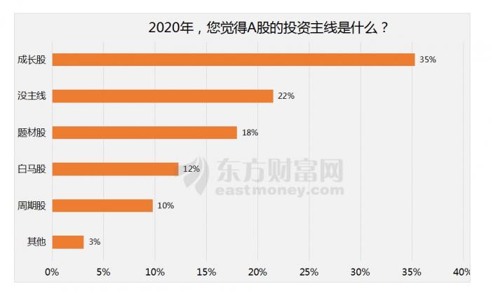 股市风格方面,股民又是怎么看的呢?调查结果显示,超三成股民认为2020年股市投资风格会切换到成长股,只有12.3%的股民认为会以白马股为主导,高达21.5%的股民认为暂时还说不清。