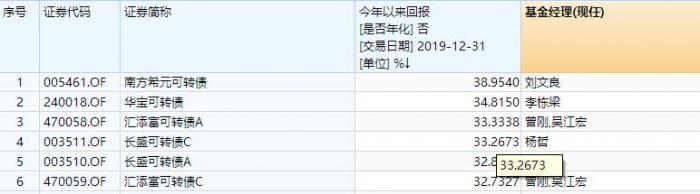 数据显示,今年以来债券型基金收益排名前5的分别是南方希元可转债、华宝可转债、汇添富可转债A、长盛可转债C、长盛可转债A、