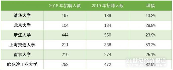 2019年华为在6所顶尖大学的招聘人数,均超过了2018年。