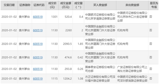 盘后数据显示,贵州茅台今日出现多笔大宗交易,其中,机构合计卖出4825万元。