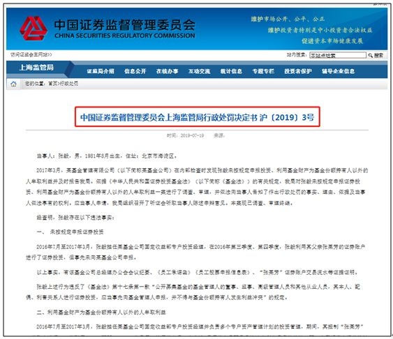事实上,在协会做出纪律处分决定前,中国证监会上海证监局在今年7月19日就公告了针对张毅的行政处罚决定书。