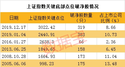 数据宝统计,2019年末沪深两市破净股数量为320只,占两市股票总数的近9%。而在2019年4月8日沪深股市处于年内高位时,A股破净股数量只有98只。仅8个多月的时间,破净股数量净增200余只。