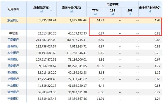 Wind统计数据显示,紫金银行最新市盈率和市净率分别为14.21倍和1.49倍,相比行业平均的6.87倍和0.88倍,分别高出106.84%和69.32%。