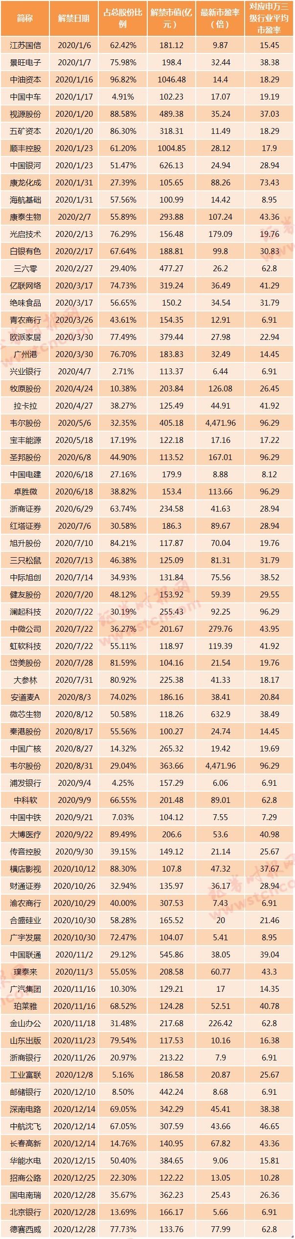 收藏!年内还有70只个股解禁市值超百亿