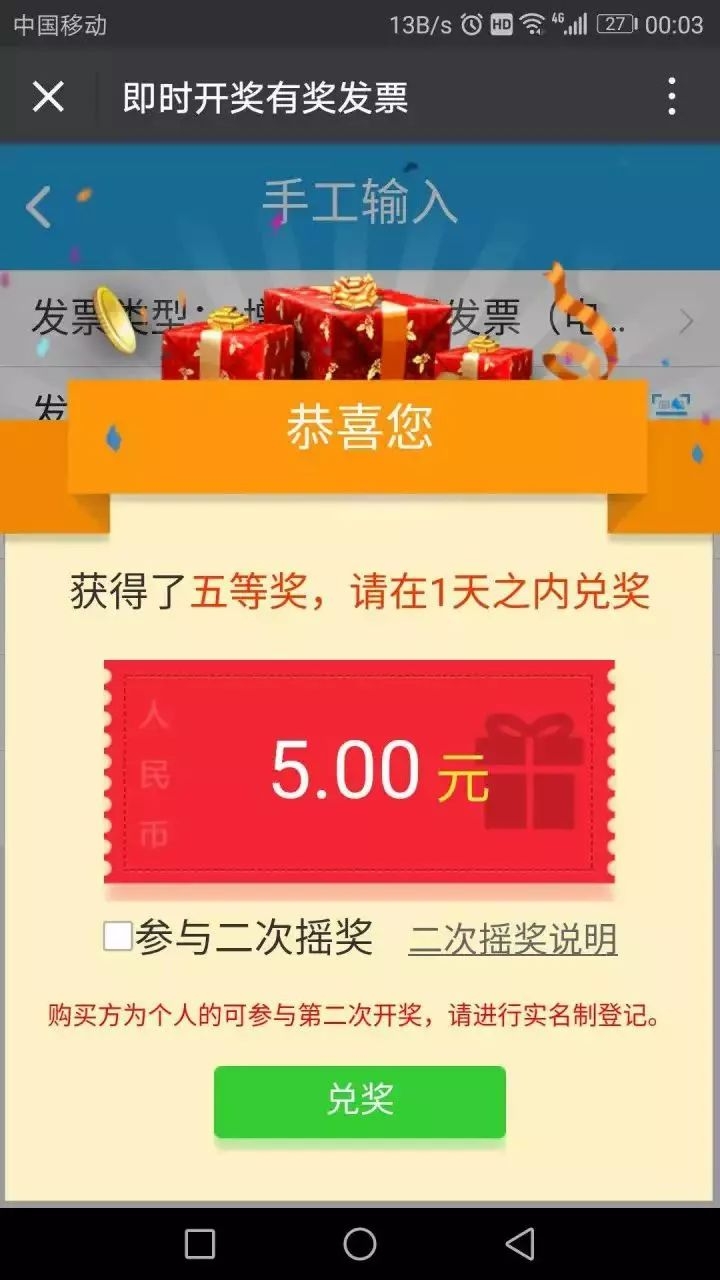 参加即开兑奖后,需根据提示信息填写内容方能参加二次摇奖↓