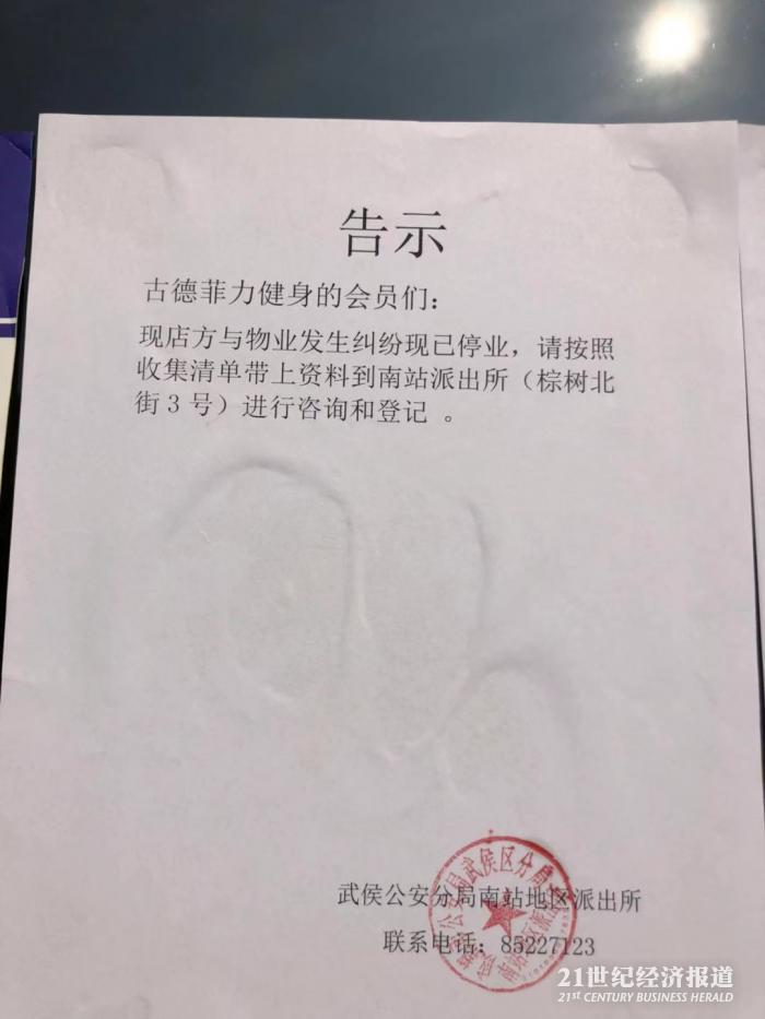 “如果我们知道发生了转让情况,或许不会在这里办理健身卡”,在古德菲力武侯店外,一名消费者对21世纪经济报道记者表示,“正因为现在健身房倒闭情况时有发生,因此才选择了一家全国连锁品牌”。