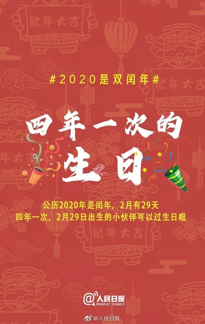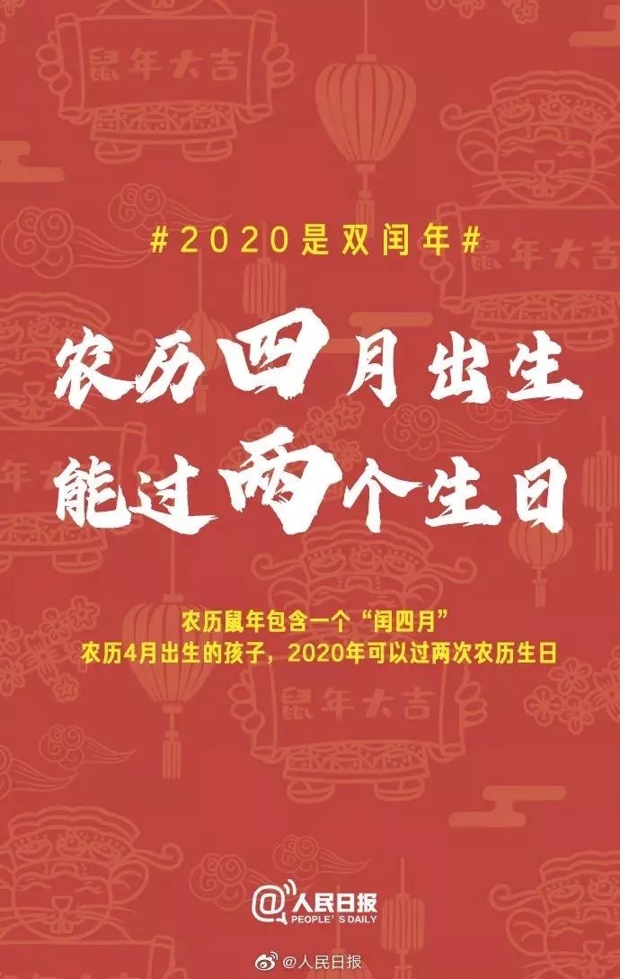 尽管,鼠年要多上一个月的班,但有网友很开心,因为2月29日出生的小伙伴终于可以在今年过生日了,同时,农历4月出生的孩子,还可以过两次生日: