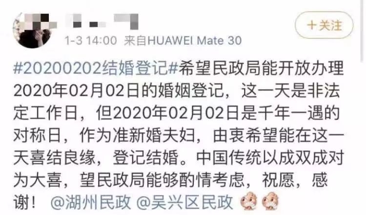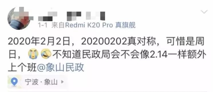 此外,不少计划领结婚证的网友,想在2020年02月02日去领证,然而,这天......是周日,原本民政局是不上班的!