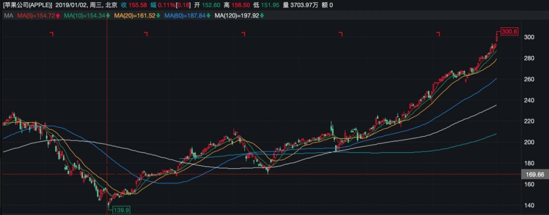 苹果公司的股票价格在2019年飙升了近89%,这是自2009年以来的最佳表现。