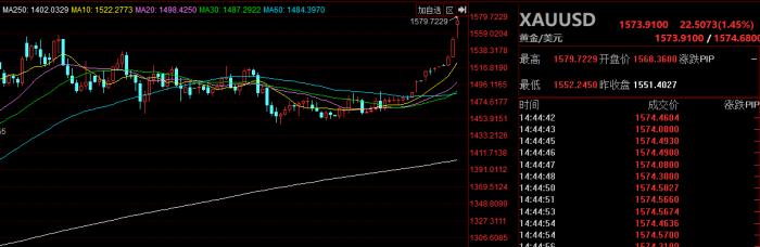 日渐焦灼的中东局势让黄金的走势激进疯狂。今日早间,亚洲交易时段,黄金继续暴涨,涨幅超过1%,轻松跨过去年9月份的高点1557美元/盎司,刷新近7年新高。