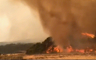 图为澳大利亚袋鼠岛凶猛的火势造成“火龙卷”肆虐。(视频截图)