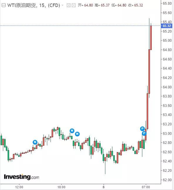 截至北京时间8:15左右,国际油价持续走高,WTI原油涨超4%,升破65美元/桶关口。