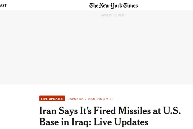 美国《纽约时报》称,伊朗方面表示,其向美军基地发射了导弹。