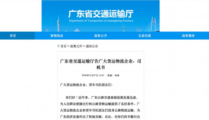 (截图自广东省交通运输厅官网)