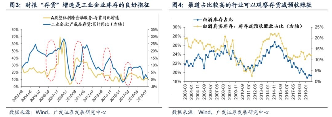 库存指标最直接对应资产负债表的“存货”科目,不再区分原材料/产成品库存。部分行业渠道销售较为强势的行业,更可以结合信用销售产生的预收账款、衡量厂商的真实库存水平。从存货同比增速和工业企业产成品库存来看,有较好的拟合代表性。经销商渠道库存较为重要的行业,结合企业信用销售产生的“预收账款”,可以通过存货减预收账款来衡量“真实存货”水平,例如白酒、白电等。